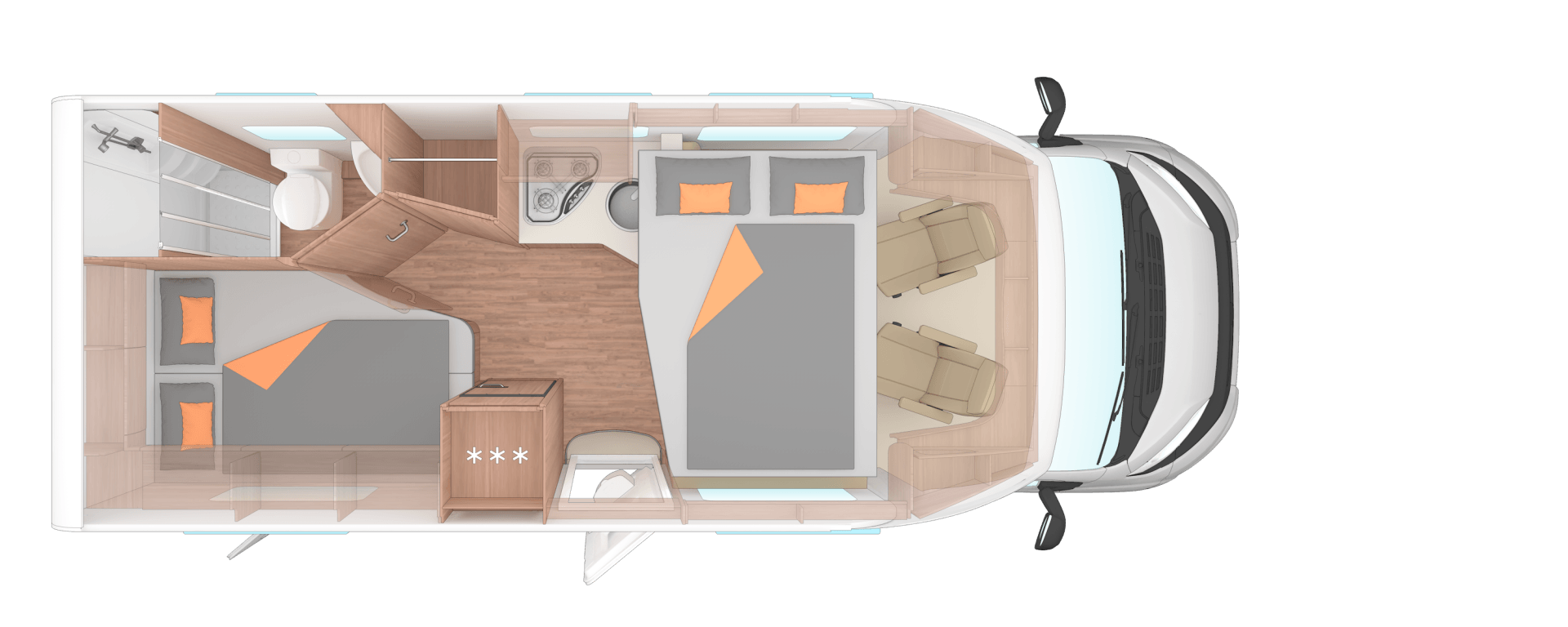 Op deze pagina vindt u een aantal foto's van het model halfintegraal camper Family om u een indruk te geven van de inrichting, het uiterlijk en de uitrusting.